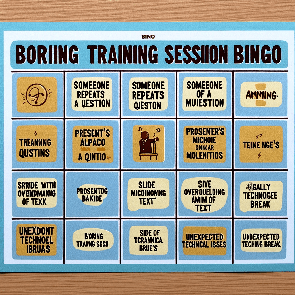 As a worker, you probably spend a lot of time attending meetings and training sessions. To entertain myself, I asked ChatGPT to generate some bingo cards. The results were hilarious.