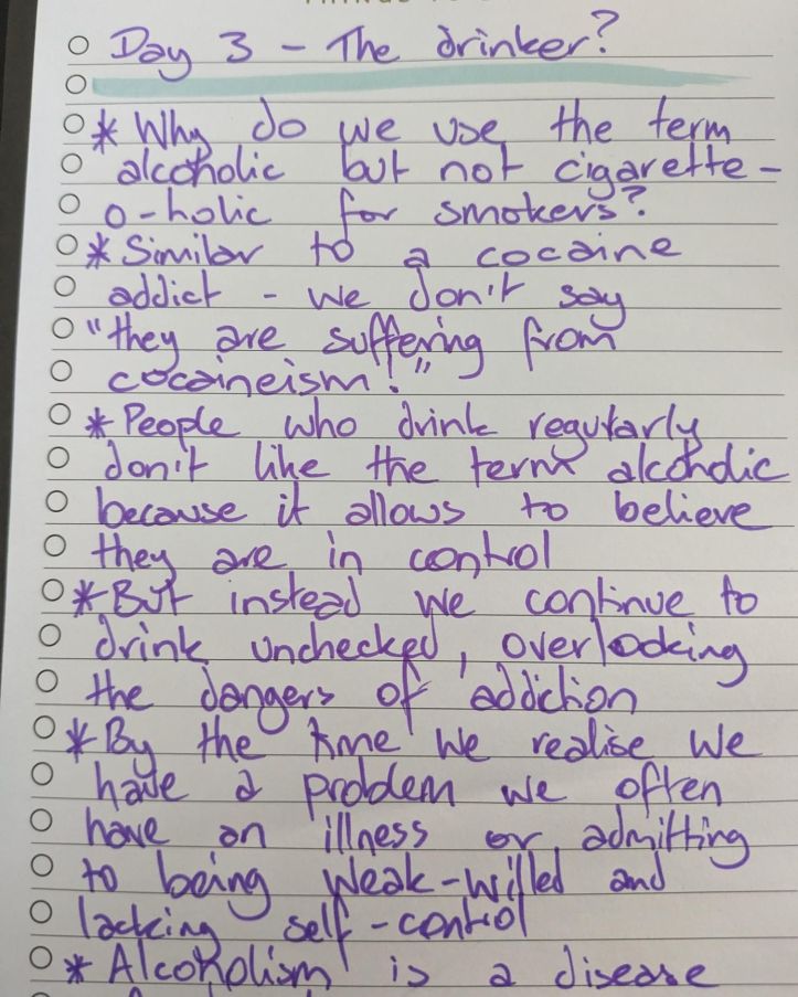 Following on from the Easter break, I’ve decided to go 30 days without alcohol. To support this I’ve been journalling and posting my pages onto Instagram: