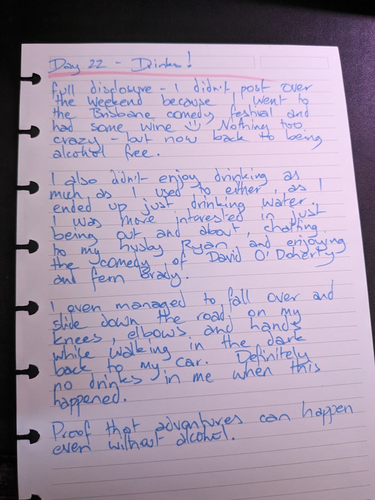 05 Sep 202414 Nov 2024 Sarah Lenihan The no alcohol challenge #9 Share this: Click to share on X (Opens in new window) X Click to share on Facebook (Opens in new window) Facebook Like Loading... Related