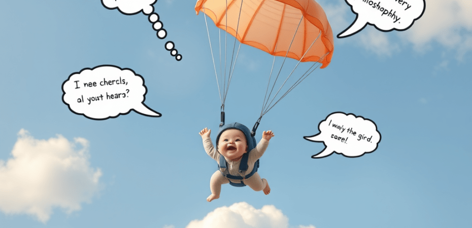 We support team-building activities like trust falls. We do not support trust-falls from 12,000 feet involving minors. - If a baby begins speaking in full sentences mid-dive and starts quoting Nietzsche or issuing ultimatums about parachute clauses, we recommend: